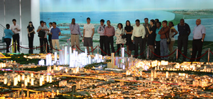 在濱海新區(qū)規(guī)劃館,客人饒有興致的觀賞了新區(qū)規(guī)劃模型,詳細(xì)了解了濱海新區(qū)的規(guī)劃和建設(shè)情況。